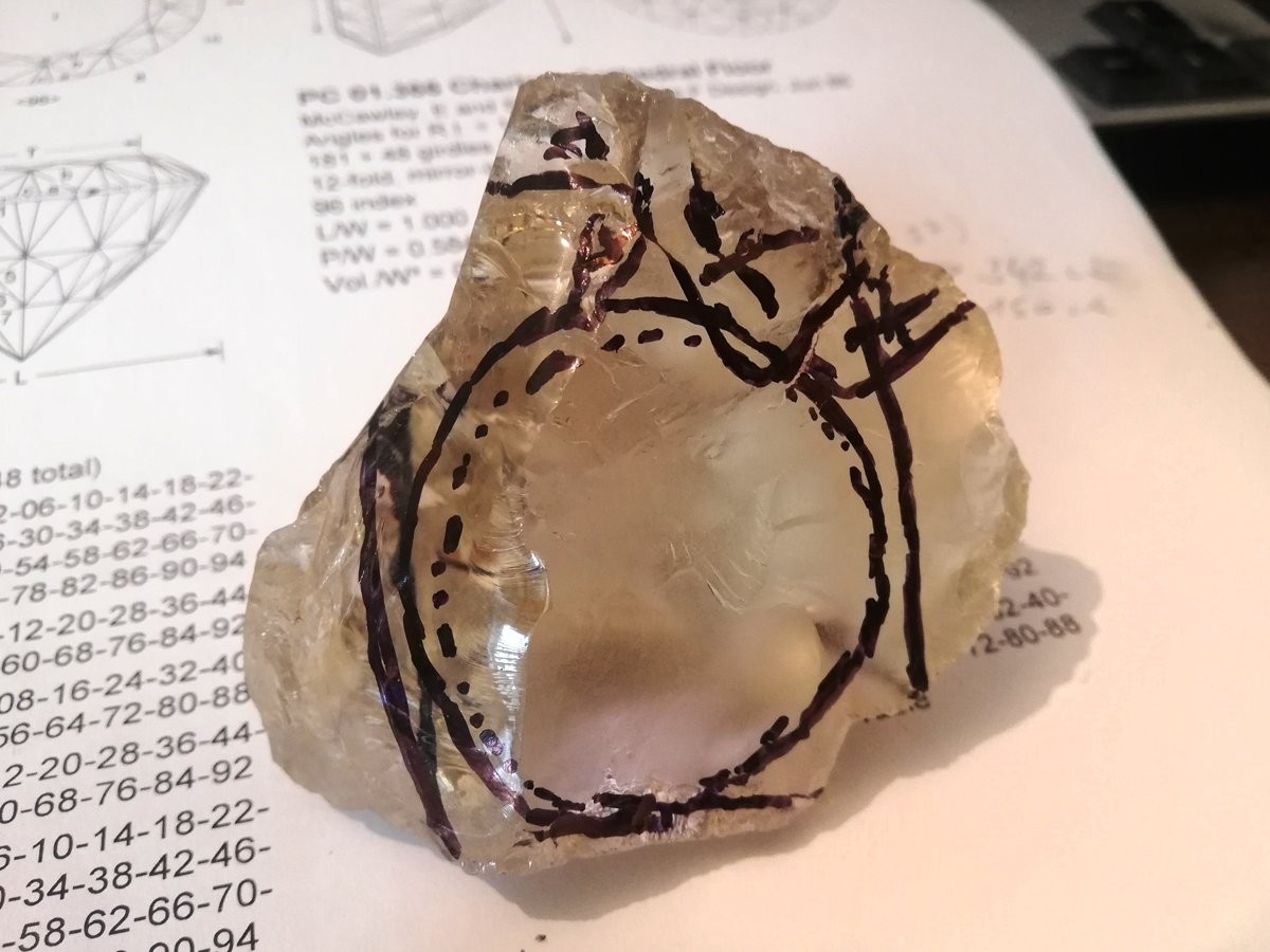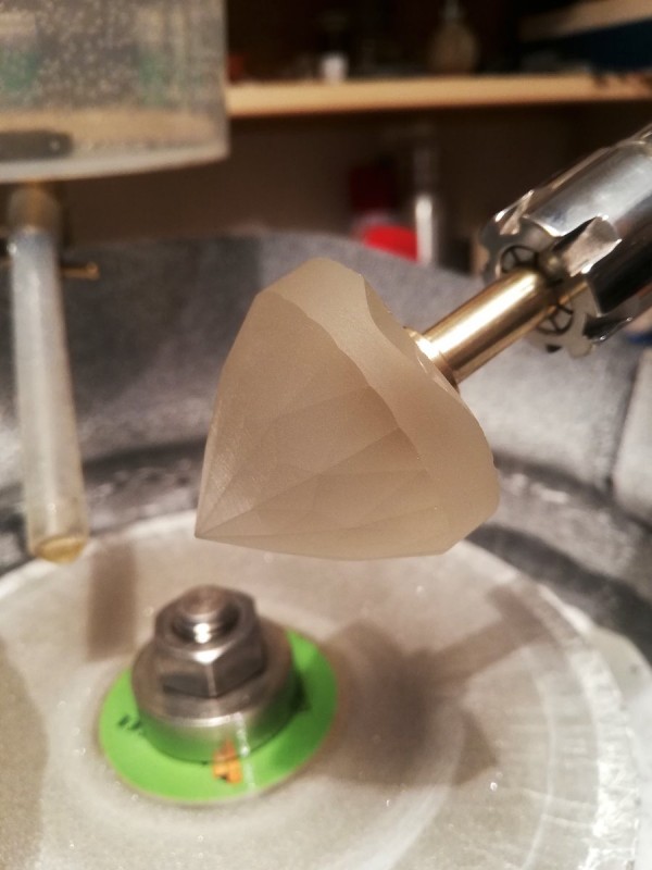 čistota: několik nezřetelných inklusí - skrytá prasklina na pavilonu a závoj v jednom místě na okraji